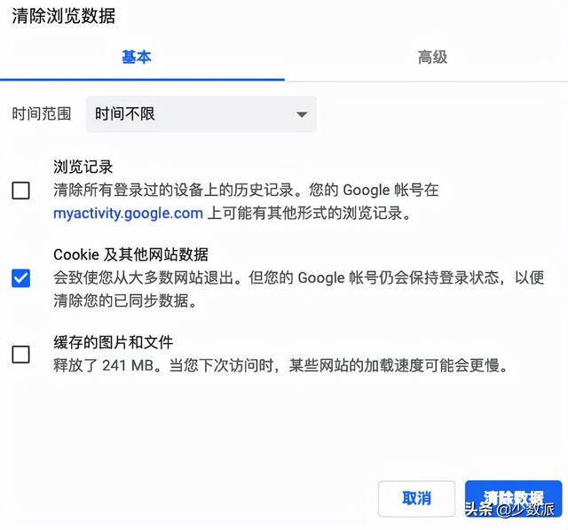 - 经常删除 Cookie 来清理网站在你浏览器中保存的识别数据,但是这也会导致网站登录状态失效
