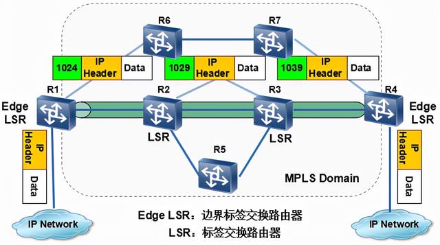 流量进入网络后就被打上了不同的标签;网络内部的路由器在收到流量的时候,是按照标签来进行流量转发的,不再去查找IP路由表;流量发出网络时就被移除标签。