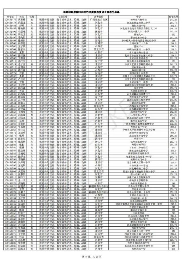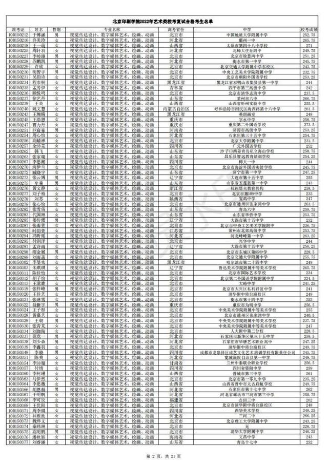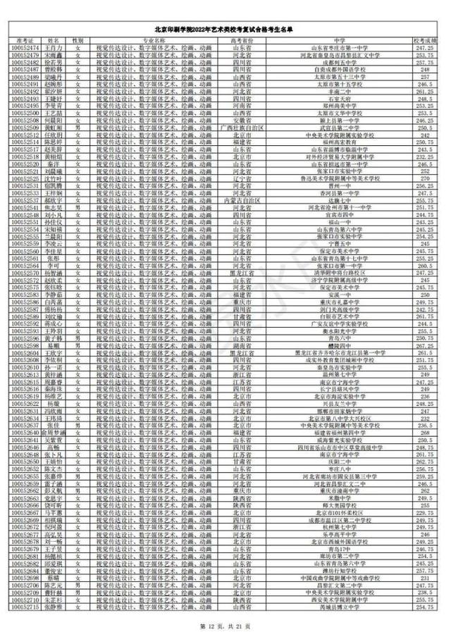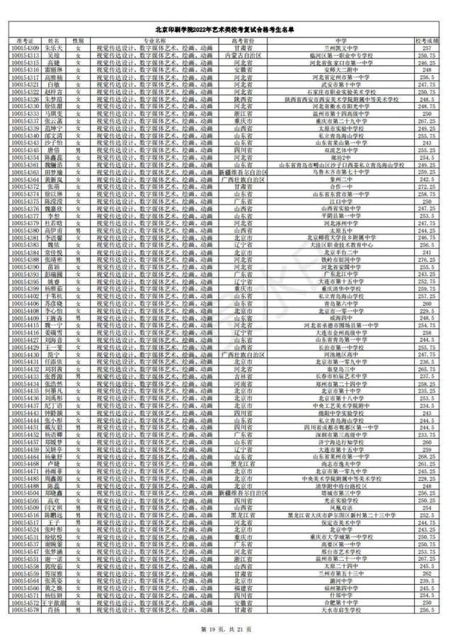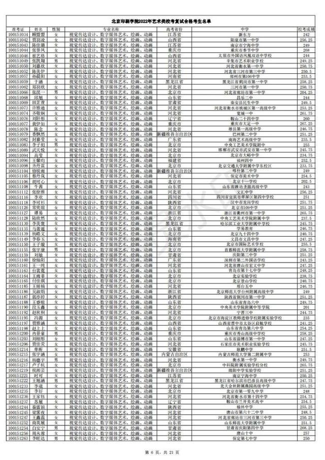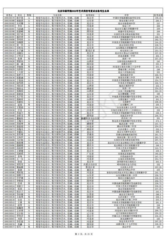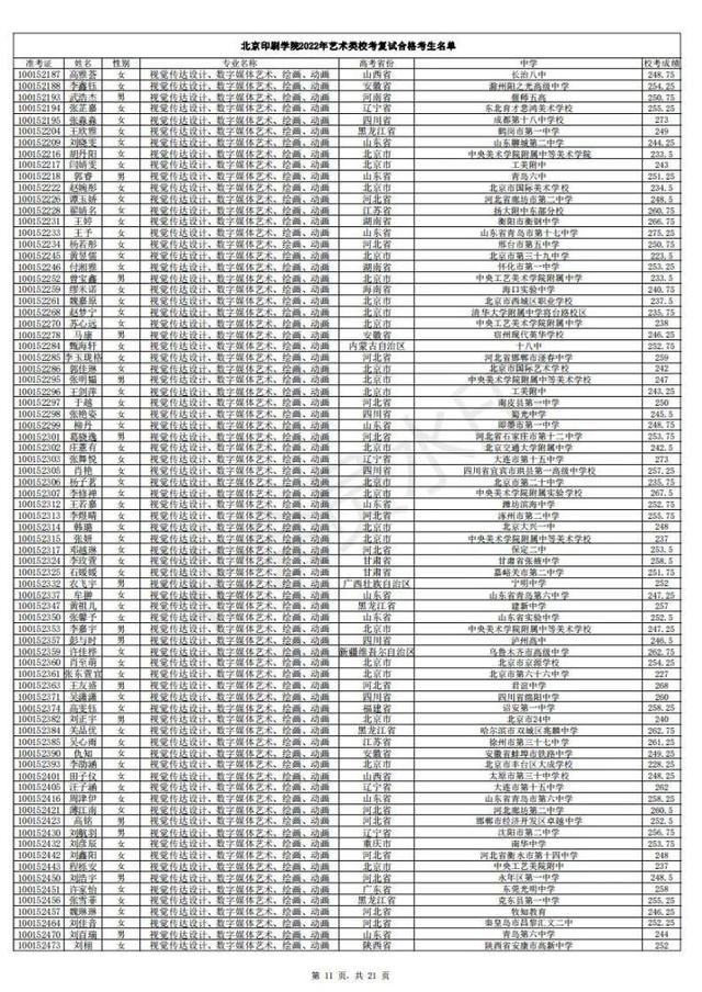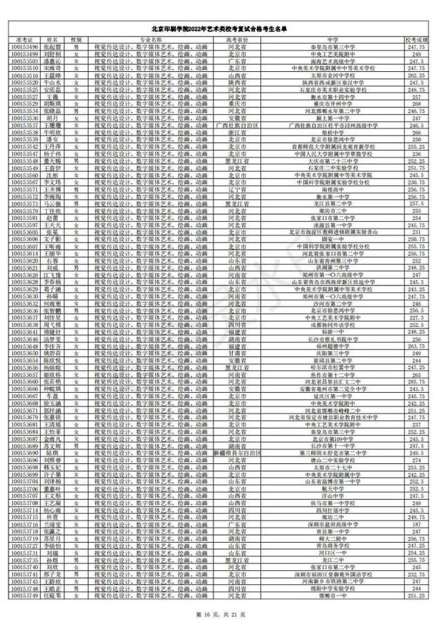 附件:北京印刷学院2022年艺术类校考复试合格考生名单