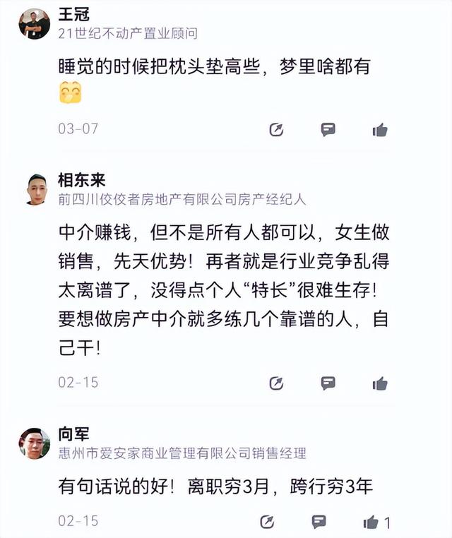 做房地产都赚不到钱的销售就想着跳槽换另外的行业,但是我想说,房地产都不吃香,你们就认为其他的行业吃香吗?而且你做习惯了这个行业,跳槽对于每个人来说,都不是一件好事,没有那么的容易的,除非你有很大的信心面对这一切,如果没有,那么还不如咬紧牙关坚持下去。