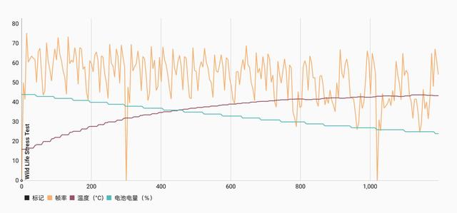 接下来是连续 20 轮的 3DMark Wild Life Stress Test 项目,这部分用来测试手机的散热和性能释放稳定性,真我 GT2 Pro 单获得了 66.2% 的稳定性,核心温度 44°C,在跑分测试中,真我 GT2 Pro 的性能释放还是相对保守一些。