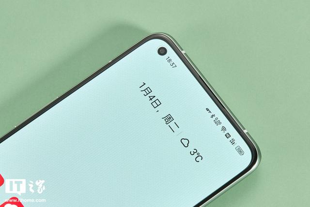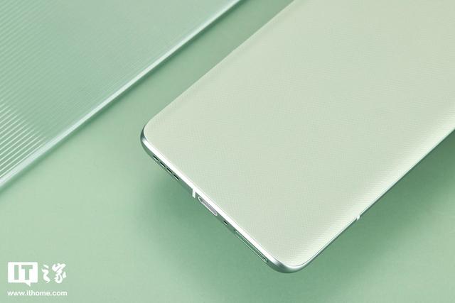 真我 GT2 Pro 大师・森的配色也相当值得一提,这是一种很小清新的淡绿色,和笔者手里的那台绿色的 iPhone 12 Mini 相比,前者的绿还要略深略厚重一点,此外,手机的金属中框、影像模组的玻璃板和后壳也基本保持了色彩的一致性。