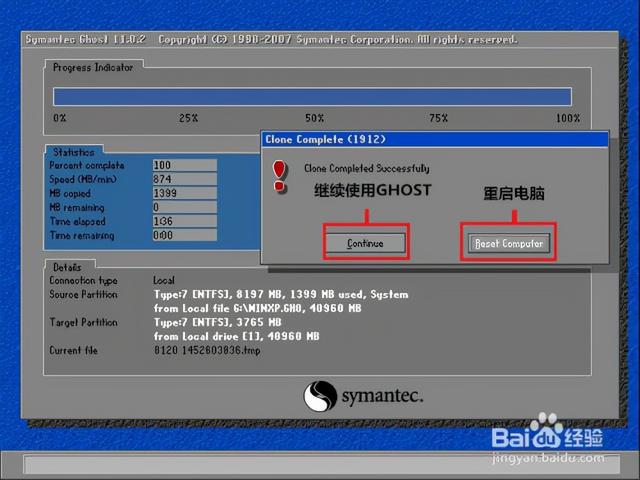 8.恢复完成,选择Reset computer 重新启动电脑。