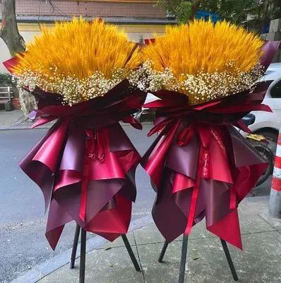 开业花篮的主色调都红色为主,寓意生意红红,一帆风顺。开业送花篮通常是送一对,寓意好事成双、双喜临门。
