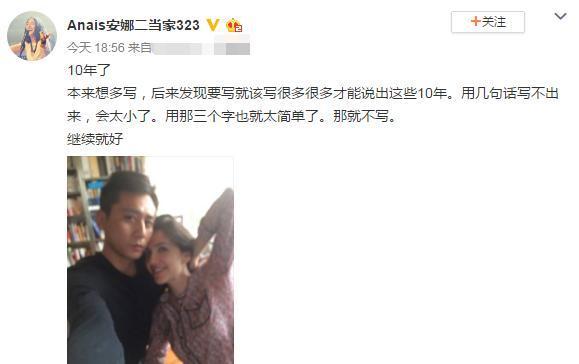 两人难得晒出一张合照,竟然已经是10周年,这样的爱情太美好了。不过不管怎么样,希望他们以后更加幸福吧!
