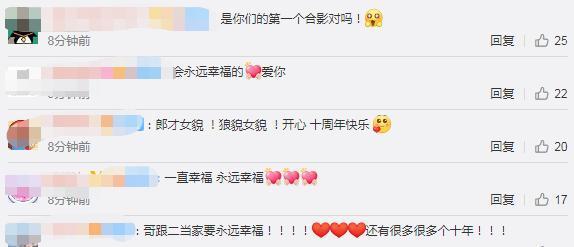 网友们也送上了满满的祝福:“你俩颜值依然在线!并没有什么变化!神仙眷侣!”“太快了! 你们俩还是那么好看!”“要永远这么快乐地在一起呀!”