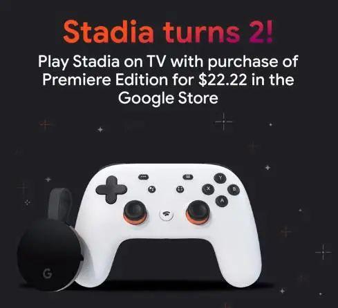 虽然步履蹒跚,但值此两周年的日子中,Stadia还是举办了周年庆,并进行了大量促销活动,比如用户可以以更便宜的价格购买Stadia手柄以及谷歌Chromecast Ultra流媒体播放器,购买超过29.99美元的游戏即可获得一定的优惠等。