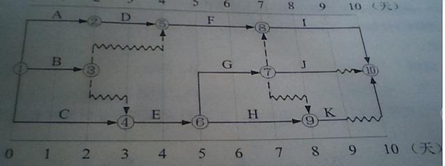 77.某工程双代号时标网络计划如下图所示,图中表明的正确信息是()