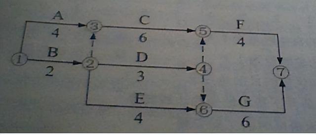 【解析】本题关键线路是A-C-F,总工期是14天,B结束后就可以进行D工作,所以D的最早开始时间是第2天结束,最迟时间是不影响G的开始,所以14-6-3=5.答案是A。