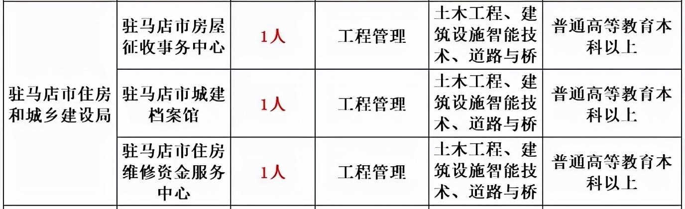 2022年驻马店市市直20个部门所属35个事业单位面向社会公开招聘工作人员111名,其中针对建工类岗位主要有3个--市住房和城乡建设局3名,具体要求如下: