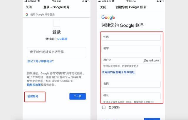 3.进入谷歌登录页后,选择“创建账号”最后依次填写资料即可