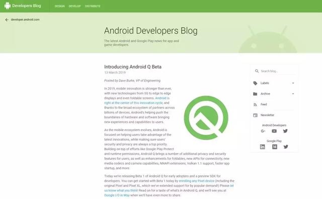 资料、图片来源:https://www.cnbeta.com/articles/tech/827139.htmhttps://fossbytes.com/android-q-name-prediction-10-dessert/https://android-developers.googleblog.com/2019/03/introducing-android-q-beta.htmlhttps://www.youtube.com/watch?v=noRVJ1wmHDQ