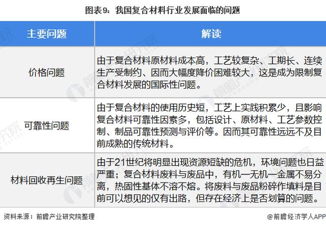 4、工艺、价格和回收成为复合材料发展的三大阻碍