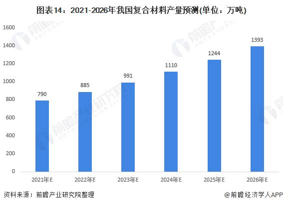 1、预计我国复合材料产量将于2026年达到1393万吨