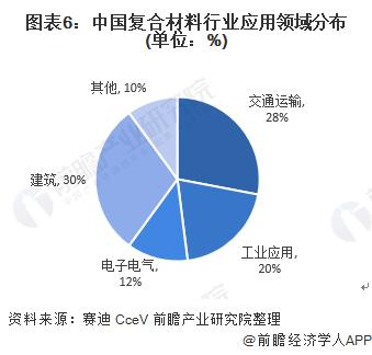 目前,复合材料技术在不断进步,但下游场景的需求未发生重大改变,结合中国玻璃纤维行业下游应用占比、玻璃纤维行业占复合材料行业比例、碳纤维应用行业占比和碳纤维占复合材料行业比例情况,复合材料应用领域的建筑占比约为30%;交通运输占比28%,其中航天航空领域占比约为70%,占主导地位;工业应用占比20%。