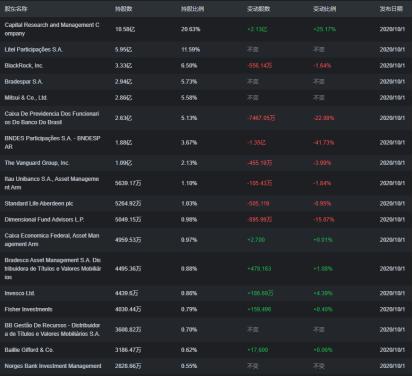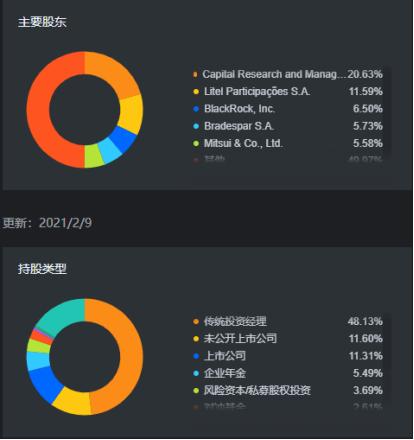 可见公司的最大股东为美国投资者,占比高达38.6%,巴西本国投资者占33.1%,日本为5.68%,英国为3.82%,挪威为0.54%,瑞士0.47%。