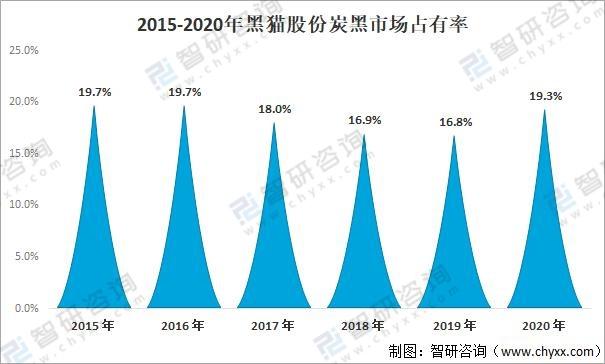 从产量占比来看,2016-2019年黑猫股份炭黑市场占有率不断下降,2020年有所提升,市场占有率为19.3%,较2019年提升了2.5个百分点。