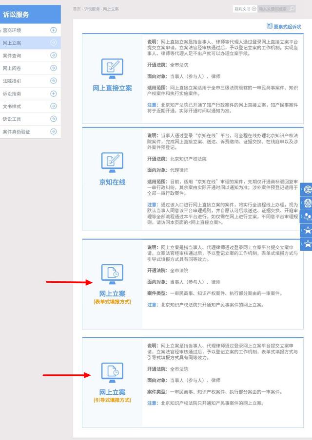 点击在该页面右下的“网上立案”