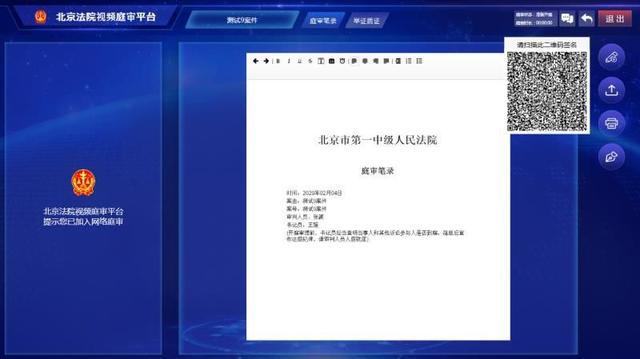 庭审过程中你可以实时查看庭审笔录,法官在庭审结束后,发起签名,当事人可点击弹出的二维码,通过手机扫描完成在线签名。