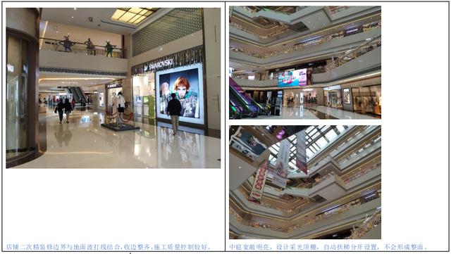1.店铺二次精装修边界与地面波打线结合,收边整齐,施工质量控制较好。