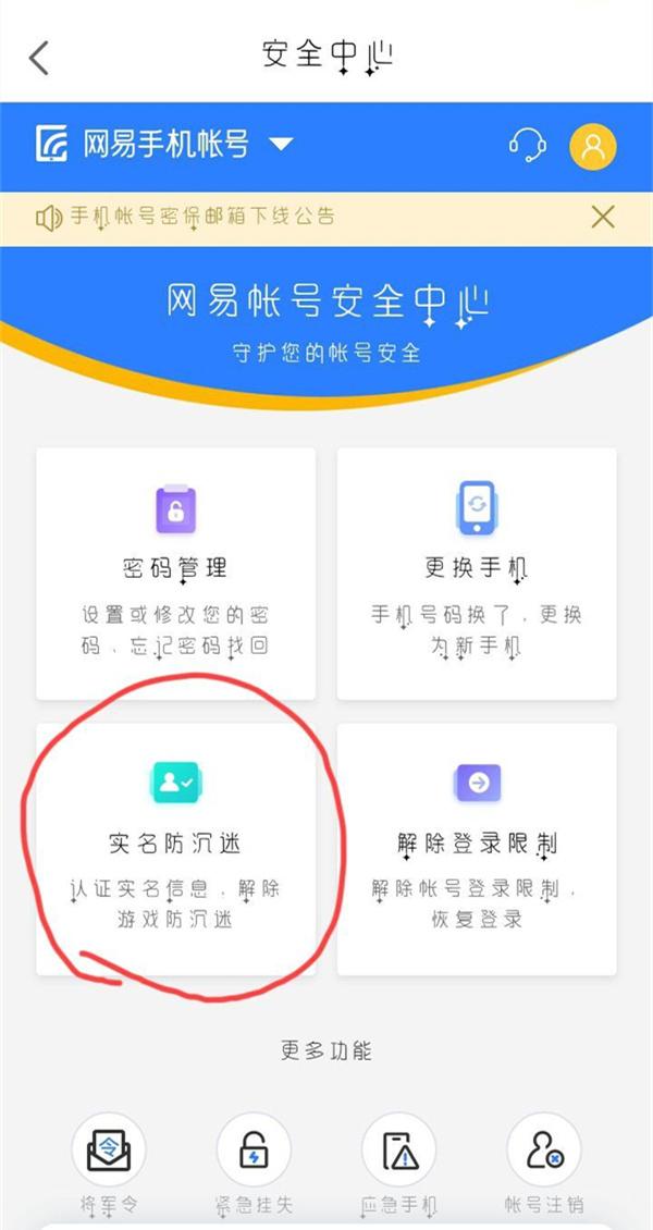 3、选择【实名防沉迷】。