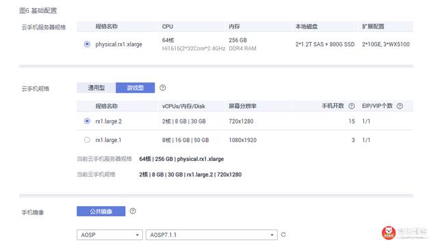 目前,华为“鲲鹏云手机”官网推荐了一款手机配置——rx1.medium.2,可发放60台云手机实例,手机分辨率是720x1280像素,搭载3.5GB RAM+10GB ROM的存储组合,每部手机每个月仅需99元+服务器每个月5950元。