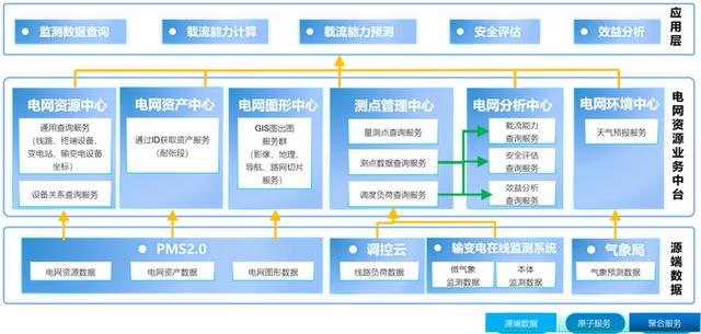输电线路动态增容技术通过调用业务中台6大中心17项服务,收集调控云、气象局、pms系统、输变电在线监测系统等多个源端平台数据,打破专业数据之间壁垒;在保证系统稳定、设备安全的前提下,通过对线路的运行状况和外界环境进行实时监测和分析,充分利用现有在线监测数据,实时计算出满足热稳定限额的最大输送容量;根据计算结果进行实时调整输送容量,充分挖掘现有线路负载能力的潜能,提高输电线路的输送能力,同时减少输电设备的投资。