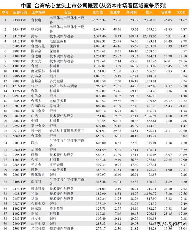 台湾龙头上市公司概要(从资本市场看区域竞争系列)