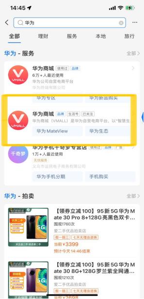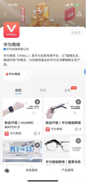 以华为商城为例,在生活号里,用户可以看到华为商城近期发布的动态、专栏消息;能通过“自助服务”使用相关服务,还能直接跳转商家小程序,进行下单购买或其他后续操作。除了直接在“生活频道”里刷到相关信息,用户还可在支付宝App首页搜索“华为”,从搜索结果页进入华为商城的生活号。