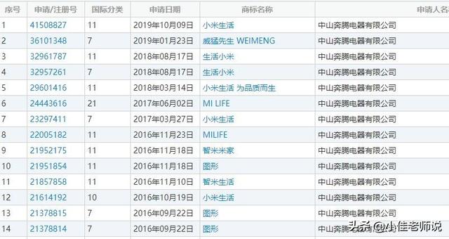 2011年11月,中山奔腾公司申请注册“小米生活”商标,2015年被核准注册,核定使用商品包括电炊具、热水器、电压力锅等。2018年“小米生活”注册商标因“系通过不正当手段取得注册”被宣告无效。此外,在中山奔腾公司注册的90余件商标中,不仅有多件与小米科技公司“小米”“智米”标识近似,还有多件与“百事可乐PAPSIPAPNE”“盖乐世”“威猛先生”等知名品牌相同或近似。