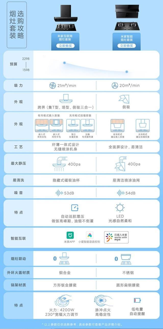 如果想优惠可以买套装,互联网与智能系列的油烟机和灶具互相捆绑销售,直接入互联网烟灶套装即可。