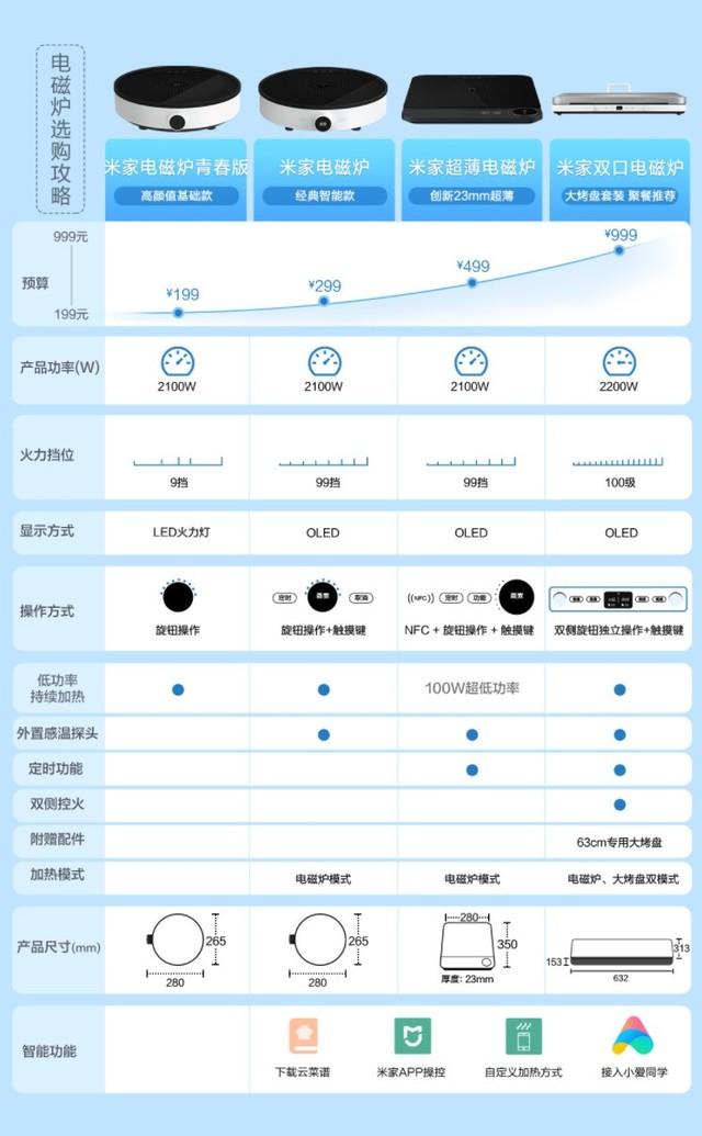 电磁炉产品目前小米拥有四款,分别是米家电磁炉、米家电磁炉青春版、超薄电磁炉和双口电磁炉,四款产品定位不同。