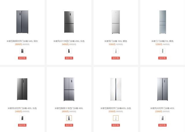 最后一个厨房用大家电是冰箱。目前小米旗下冰箱产品一共有8款,从双层到十字四门,涉及千元到三千元不同价位。选购时可以参考自家户型大小,在能接受的尺寸里挑容积最大的买就行。
