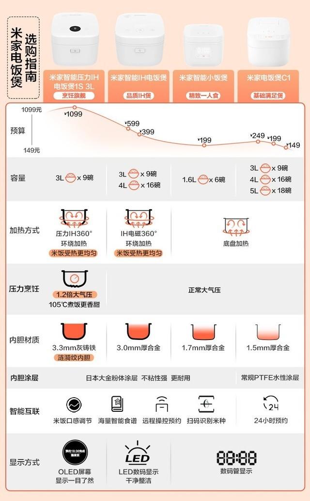 如果家里人比较多可以选择3升容量款的米家IH电饭煲,如果在家里有电压力锅的情况下,其他款就不是很推荐了。