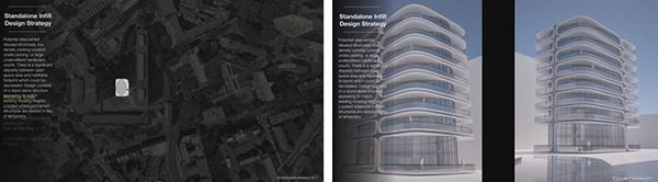 独立式增建住宅设计策略:潜在地点为废弃建筑,低密度停车场所在地,以及利用率底下的庞大景观场地。新建的独立建筑与现有房屋高度保持一致,建筑的场地应当按照永久性建筑进行考虑,而非临时性建筑。