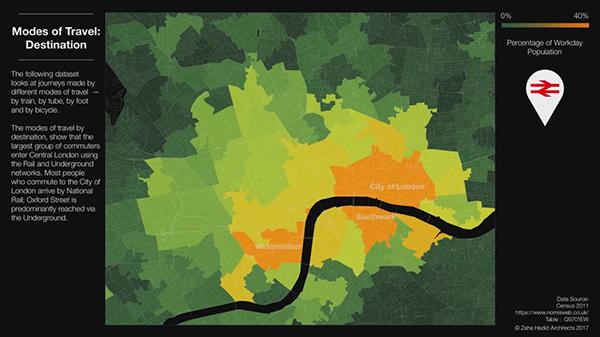 交通模式分析表明,进入伦敦中心区的大部分通勤者采用火车和地铁两种交通方式。