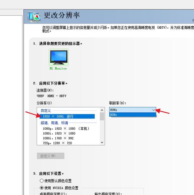 之后回到NVIDA控制面板的界面,可以看到有自定义的选项,刷新率可以直接调节到80Hz了: