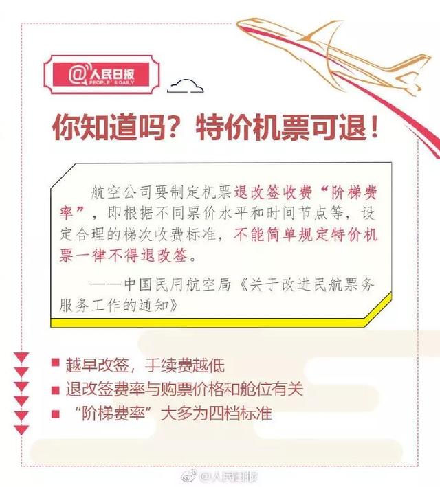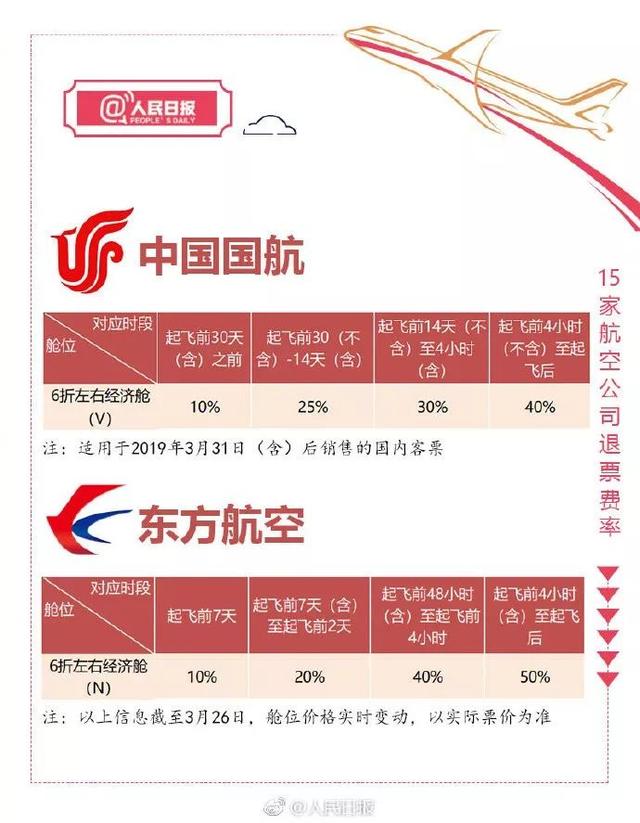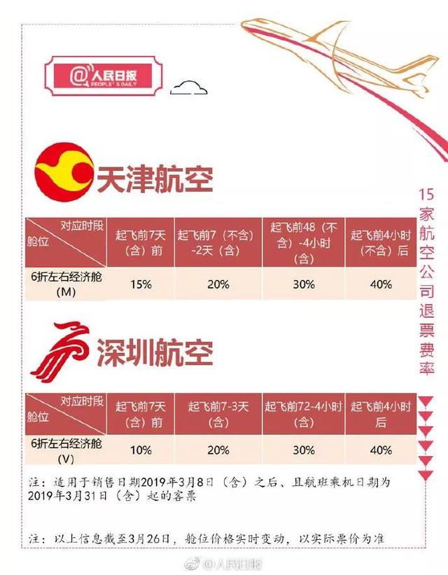 目前,多家航空公司已实行四档退改签“阶梯费率”,你的特价机票也可退了!以6折经济舱机票为例,不同航空公司如何收取手续费?怎样退票,手续费最低?15家航空公司退票费率表↓转发收藏!