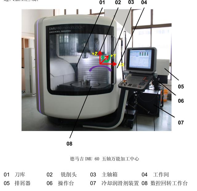 德马吉五轴万能加工中心 DMU60 是同类级别中最高效的 5 轴加工中心,灵活性最佳,DMU mono BLOCK® 机床与身俱来的高水准:标配 5 轴或模块式设计,可选配转速在 10000rpm~42000rpm 范围之间的针对特定机床的主轴,用作 B 轴的快速动态数控铣头具有很大的摆动范围,负摆角最大达 30°,还有快速数控回转工作台,适用于日常生产的 5 面/5 轴加工。这些创新特点在万能高速加工领域开拓了广泛的应用范围,不断提高的通达性和最佳的操作舒适性。机床设计符合人体工程学,最吸引人的设计特点是旋转门,只要拉一下手柄,就可以完全进入加工区域