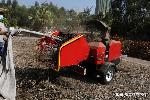 但是树枝体积大,给搬运造成困难,所以近年来,陆续有政府单位人员使用木材粉碎机,直接在路面处理废弃树枝,木屑直接喷洒在车厢内,粉碎完成后直接开车运走。