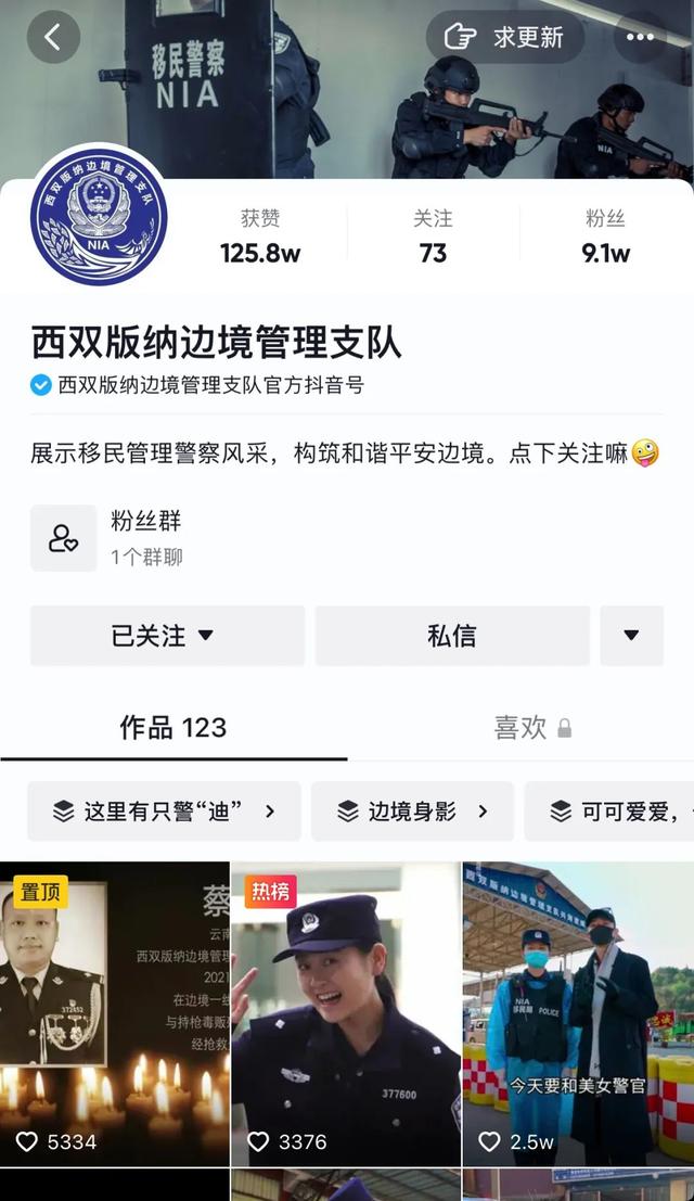 2021年3月,@西双版纳边境管理支队 正式入驻抖音,其抖音作品聚焦于展示移民管理警察的风采,真实记录禁毒现场。