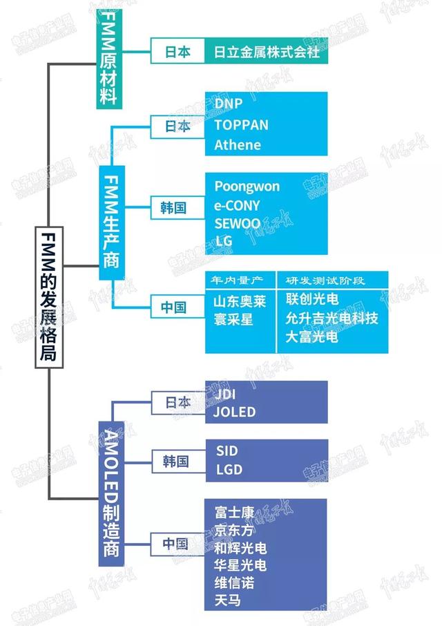 从现阶段的FMM形成的产业链来看,上游材料INVAR(10〜20μm厚)只有日立金属可以生产,中游主要是日韩和中国台湾地区,而据赛迪顾问高级咨询师刘暾透露,我国涉及金属掩膜板生产的企业屈指可数,且大多以生产CMM为主,高精度金属掩模板(FMM)一直处于测试研发阶段,还没有能够量产的企业。“我国高端掩膜板长期依赖进口,而中国却是需求量最大的市场。”刘暾认为,山东奥莱电子与寰采星科技金属掩膜板实现量产,将改变我国OLED产业受制于人的局面。