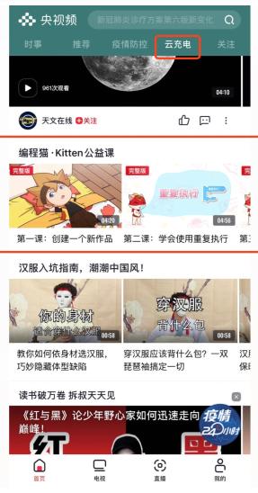2月12日,中央电视台《新闻联播》节目报道,针对当前寒假和延迟开学,央视频与多家教育机构合作,开通“云充电”中小学课程系列直播。课程不仅覆盖中小学十二个年级,还汇聚了趣味知识、人文历史、家庭教育等内容。截止目前,该栏目观看已超过3亿次。