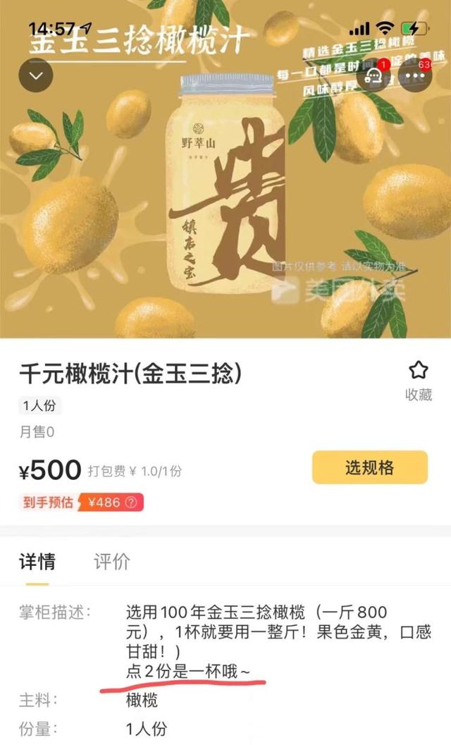 “如果要喝的话是需要提前预约的”,深圳一家野萃山门店的工作人员表示,并非每个门店都有这一原材料,因此需要时间进行调度。在原材料到达后,也需要时间进行制作。由于橄榄出汁率较低,因此制作时间也会久一些。