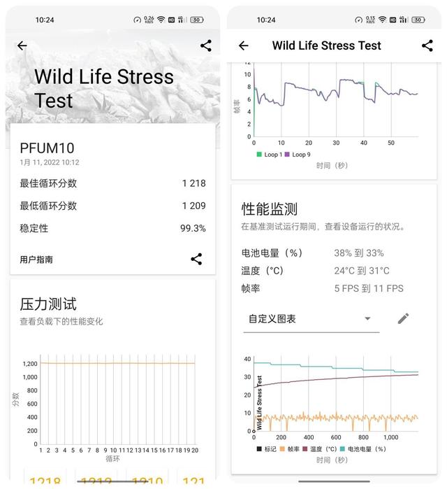 IT之家还测试了 3DMark 的 Wild Life Stress Test 项目,连续进行 20 轮的高强度测试以展现手机的散热和性能释放稳定性,在这项测试中,OPPO A96 获得了 99.3% 的稳定性。显然,骁龙 695 出色的低功耗表现提到了一定的作用。