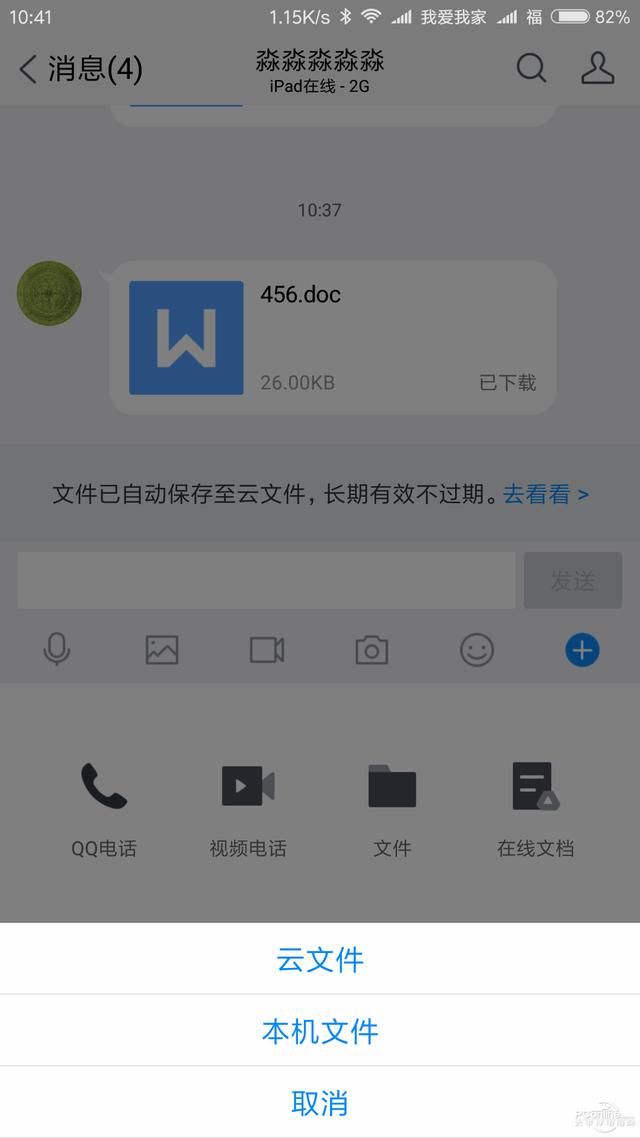 图11 可直接发送云文件里的文件 图12 可直接打开云文件里的文档