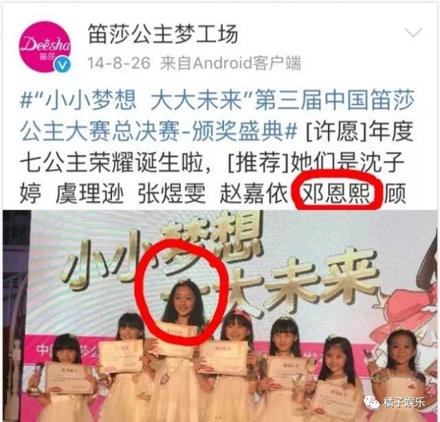 经过各种搜索之后也没有发现更多信息,橘子君找些照片给大家,大家自行感受。这是邓恩熙9岁参加笛莎公主梦工厂的照片,看起来比其他孩子长得高一些。