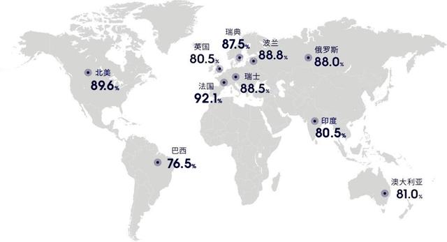 汤姆逊在全球高端市场的品牌认知度。数据来源:GFK