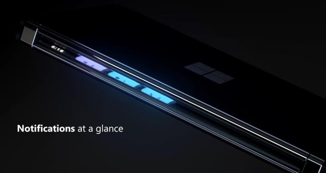 值得一提的,当两块屏幕合上的时候,铰链位置的屏幕可以提示通知: