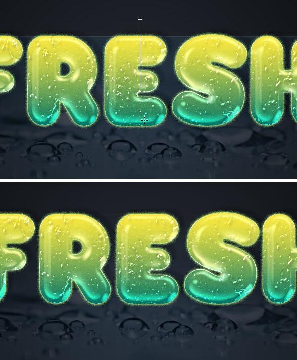 接下来,将光标放在水滴图像的上边缘上方,然后单击并拖动到文本的底部。这将清除图像的上半部分,并使其淡入原始背景。您可以撤消并重做该步骤,直至获得您认为看起来不错的结果。